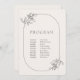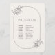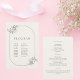 Ce programme de mariage élégant présente un fond crème minimaliste orné d'une délicate illustration botanique en noir, ajoutant une touche intemporelle et raffinée. La couverture décrit votre itinéraire de mariage avec un texte clair et lisible, tandis que le verso énumère l'ordre de la cérémonie, les détails du cortège nuptial et un message de remerciement sincère. Idéal pour les mariages modernes ou classiques, ce design allie sophistication et simplicité, assurant que vos invités se sentent informés et les bienvenus. Personnalisez-le avec vos détails uniques pour qu'il corresponde parfaitement à votre journée spéciale.
