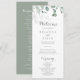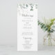 Ce programme minimaliste de mariage d'eucalyptus à la végétation luxuriante est parfait pour un mariage rustique. Le design comprend des feuilles d'eucalyptus verts et élégants à l'aquarelle.