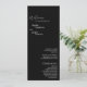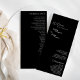 Ce programme moderne classique de mariage noir plat est parfait pour votre mariage moderne élégant. Ce design est composé de calligraphie simple et blanche sur un arrière - plan noir foncé pour correspondre à votre mariage traditionnel classique ou à votre mariage boho minimaliste au printemps, en été, en automne ou en hiver. N'hésitez pas à nous contacter pour toute question concernant ce design.