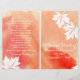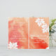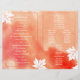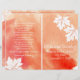 Cérémonie de mariage de pêche de corail abstraite moderne et programme plié de fête avec une peinture d'aquarelle peinte à la main avec la texture dans les tons de corail orange et pêche, feuilles d'érable en blanc avec veines de corail et texte en blanc. Cet élégant design décontracté mariage est un modèle entièrement personnalisable, idéal pour votre mariage de printemps, d'été ou d'automne. Il faut le plier au centre. Choisissez seulement ce type de papier-valeur comme il se plie bien. Notez qu'il ne s'agit que d'une image d'aquarelle et non d'une texture réelle.