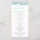 Un chevron gris et blanc moderne ou un motif zig zag accentué en aqua avec un programme de mariage aqua bow pour compléter notre faire-part de mariage.