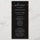 Programme de mariage moderne personnalisé en noir et blanc avec une police de caractères élégante. Éléments correspondants disponibles.