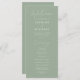 Créez une impression durable avec notre programme de mariage magnifiquement conçu, avec un chic script blanc écrit à la main sur un arrière - plan vert sage. Parfait pour les mariages modernes, ce programme est non seulement élégant mais aussi hautement personnalisable. Ajoutez une touche personnelle en incluant vos noms, la date du mariage, l'emplacement et un ordre détaillé des événements. Vous pouvez également souligner votre mariage, en vous assurant que vos invités sont bien informés et se sentent connectés à votre journée spéciale. Conçu avec simplicité et élégance à l'esprit, ce programme de mariage complète tout thème mariage tout en maintenant une esthétique contemporaine et propre. Faites de votre journée de mariage une journée mémorable grâce à un programme qui allie sophistication et détails personnels.