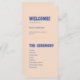 Programme moderne de mariage rétro & audacieux bleu beige. Customisez avec les noms des mariés et des mariés, votre lieu et la date du mariage, l'ordre de service et les noms des mariés à l'arrière.