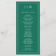 Programme de Mariage moderne avec un design simple mais élégant avec une disposition traditionnelle. Votre monogramme de deux lettres est en haut avec vos détails entourés d'une mince bordure. Tous les éléments de conception sont blancs sur un arrière - plan vert émeraude de ton bijou et peuvent être changés dans l'outil d'édition de conception. Un design minimaliste à l'ambiance classique qui conviendra à un mariage formel.