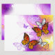 Orange, papillons monarques détaillés sur la lumière, violet, pittoresque, arrière - plan peint.