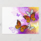 Orange, papillons monarques détaillés sur la lumière, violet, pittoresque, arrière - plan peint.