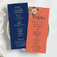 Ajoutez une touche d'élégance rustique à votre mariage grâce à notre programme de mariage floral à l'aquarelle chic. Doté d'un beau mélange de pêche et de bleu marine, ce design présente d'adorables fleurs roses de style bohème, complétées par une calligraphie simple et moderne. Parfait pour les couples à la recherche d'une ambiance romantique, rustique et artistique pour leur grand jour.