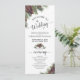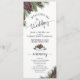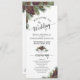 Ce programme de mariage est simple, élégant, rustique et beau. Il présente une aquarelle peinte à la main avec des branches de pin et des pinecones. La typographie est composée de calligraphie en dentelle, offrant un air d'élégance et de sophistication tout en étant encore terre à terre et homey. A de la place pour les détails de la cérémonie ainsi que la fête de mariage et un bref merci. Parfait pour un mariage en plein air ou en hiver.
