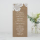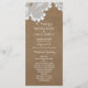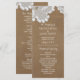 Porte-cartes de programme de mariage rustique en dentelle blanche et marron. Articles assortis disponibles.