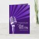 Graphic style rétro chrome microphone graphiques et lignes vocales projetant la voix récital de musique programme de performance en violet et blanc. Parfait pour vos invités de voir l'ordre des événements et de créditer vos artistes qui sont soit voix, chantant ou micro ouvert, musical ou à un récital de conférencier ou d'événement musical. Customisez avec les détails de votre événement, y compris l'orchestre. Idéal pour un événement fundrasier ou dédié à une personne spéciale. D'autres articles correspondants sont disponibles. © Design unique et illustration de Sarah Trett pour www.mylittleeden.com (retour photo de Obie Fernandez sur Unsplash).