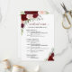 These beautiful cards are designed to let your guests know the schedule for your wedding celebration. The rustic boho chic design includes hand painted watercolor roses, eucalyptus leaves, and garden greenery in shades of burgundy, red, and blush pink. The front has a list of events for the entire weekend, and the back has a detailed timeline for the wedding day itself. Great addition to a wedding welcome bag, and a wonderful way to thank your guests for celebrating with you!