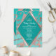 Elégant, chic et moderne avec une ambiance rétro, faux imprimé rose or géométrique forme diamant contour sur turquoise vert et faux rose marbre d'or avec mauve, et coutouts de diamant rose roux, fans de programme de mariage. Ce design classique et sophistiqué est parfait pour le couple marié branché et élégant. Personnalisez avec votre propre message sur l'avant ainsi qu'avec un premier monogramme customisé sur l'arrière. Toute la conception d'impression photo.