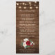 Lumières rustiques à cordes de pays et bocal de maçon avec bordeaux, rouge, marsala, marron, ivoire, bouquet floral couleur rousse et eucalyptus feuilles sur la carte de programme de mariage arrière - plan de bois. Veuillez me contacter pour toute aide sur la personnalisation ou si vous avez besoin d'un autre produit avec ce design.