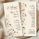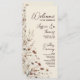 Bienvenue à votre cérémonie de mariage avec ce programme de mariage fleur sauvage bohème rustique. On y trouve des fleurs d'aster, des fleurs et des herbes dans des tons terreux de rose, de terre cuite, de taupe et de bleu poussiéreux, le tout sur un arrière - plan crème ou beige. Les titres sont écrits en lettres de script élégantes et il y a de l'espace pour les détails de la cérémonie, mariage ou fête de mariage, et une courte note de remerciement. Le texte juste et justifié donne au programme une ambiance unique et moderne.