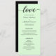 Personnalisez et customisez ce modèle de programme de mariage facile à utiliser et modifiable. Vert clair, chic, moderne, élégant et simple. Customisez les noms de la mariée et du marié, l'emplacement, la date du mariage, l'ordre de cérémonie, les noms des fêtes de mariage (y compris les parents de la mariée et du marié, officiant, bonne d'honneur, homme de qualité, groomsmen, filles de fleurs, demoiselles d'honneur, porte-bague) personnalisez pour votre entourage mariage. Un message de remerciement peut également être édité pour personnaliser ceci avec vos propres mots pour vos invités. Contactez info@lddesignloft.com si vous avez besoin d'aide pour cette conception. ©lddesignloft www.lddesignloft.com
