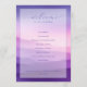 This wedding program features a modern, minimalist design with a vertical layout and soft gradient background transitioning from deep purple to light pink and lavender. The color palette creates an ethereal, romantic atmosphere, while the clean lines and ample negative space enhance readability. Elegant cursive typography for "welcome" contrasts with bold sans-serif headers and simple serif fonts for the ceremony details, ensuring clarity and sophistication. Perfect for couples seeking a serene and stylish touch for their special day, this design focuses on typographic elements to convey a sophisticated mood without additional illustrations.