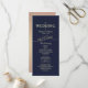 Elégant, moderne, minimaliste, simple programme de mariage rose or et bleu marine avec des inséparables uniques dessinés à la main, feuillage, fleurs et scénario de calligraphie tendance.