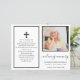 Photo Sympathy Funeral Prayer Card Ce programme présente un design minimal qui peut être customisé avec votre texte et votre photo. Le dos est vide pour que vous puissiez imprimer votre propre programme.