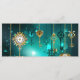 Or, clés antiques avec engrenages et cadrans accrochés sur chaînes dorées sur arrière - plan vert lumineux.