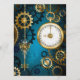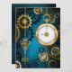 Arrière - plan turquoise, texturé, steampunk avec des engrenages en laiton et or, une clé en argent et l'horloge. Style Steampunk.