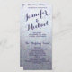 Ce programme de mariage charmant et élégant présente de subtiles parties scintillant dans les tons bleu et violet et serait parfait pour tout mariage ou événement. Il est entièrement personnalisable avec votre texte, et, vous pouvez changer la police et les couleurs afin de le rendre vraiment vôtre. Note : Arrière - plan est une impression graphique et ne contient aucune parties scintillant désordonnée. Conception par Amelia Carrie.