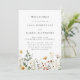 This design features a watercolor border of wildflowers in shades of gold, red, blue, and green. Perfect for spring and summer weddings.
