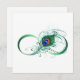 Le symbole de l'infinity with a bright, green, artistic peacock feather on a white background. Tattoo style.