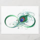 Le symbole de l'infinity with a bright, green, artistic peacock feather on a white background. Tattoo style.