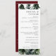 Éléments : l'avant est orné d'une forêt à feuillage persistant aquarelle. Le dos un plaid festif. Couleurs : Rouge, grenat, écarlate, cassis, vin, blanc, noir, vert, pin, chasseur, genièvre, mousse. Thèmes : Rustique, plein air, boisé, hiver, Noël, automne, montagnes, randonnée, écossais, plaid, tartan, moderne. Collection : Rustic Forest Tartan Plaid Red Black Green White Collection Mariage Type de produit : Programme