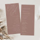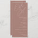 Une belle carte de programme de mariage basée sur la typographie avec vos initiales en écriture de script surdimensionnée en haut, en ton sur les tons pour un effet filigrane. Personnalisez avec les détails de votre cérémonie sous, et customisez le dos avec votre fête de mariage. Notre colorway en terre cuite est un élégant mélange de neutrales terreux, avec du lettrage blanc chaud sur un arrière - plan en terre cuite.