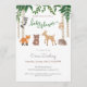 Célébrez le petit en chemin avec ces adorables invitations à la douche bébé en bois! Un chevreuil doux, un renard timide, un ours brun, un raton laveur, du porc-épic et un vieux hibou sage se joignent à la forêt. Les peupliers sont à l'avant et au centre tandis que la verdure orne le sommet. Le dos est brun et blanc polka motif point. Parfait pour les baby showers sans distinction de genre.