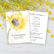 Souvenez-vous de votre bien-aimé et célébrez leur vie avec le joli Sunflower Jaune dans Vase Watercolor Funeral Memorial Service Program. Cette ligne de temps joyeuse fleurie service de tribut de mort présente une photo florale peinte à l'aquarelle d'une fleur de tournesol jaune sur une tige verte dans un vase en verre avec un arrière - plan blanc. Customisez-le avec les détails personnels et l'ordre de cérémonie de leur célébration de la vie église service.