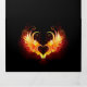 Angel fire heart with flaming wings on black background.