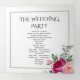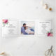 Ce programme triplé magnifiquement conçu pour un mariage de printemps présente des branches ornées de fines fleurs roses, complétées par des fleurs blanches et des feuilles verts sauge aux coins. L'élégante mise en page comprend une photo chère du couple qui est exposée au centre du panneau intérieur, tandis que leurs noms sont artistiquement crées dans la typographie décorative. Chaque panneau est encadré de fines bordures noires et élégantes, ajoutant une touche de sophistication à ce programme de cérémonie et de célébration de mariage charmant.