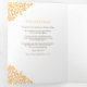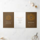 Brown programme de mariage d'art botanique à feuilles d'oranger dessiné à la main avec vos propres sections histoire d'amour et souvenir. Personnalisez ce programme triplé mariage avec vos propres détails de cérémonie de mariage, les noms de fête, l'histoire d'amour et les dédicaces. Un design simple de feuilles encerclant vos propres initiales monographiques en orange et marron sur blanc. Autres couleurs et articles mariages correspondants disponibles. © Dessin et dessin de la feuille d'origine par Sarah Trett pour www.mylittleedenweddings.com sur Zazzle.