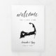 Vous planifiez un mariage à destination, ou vous attendez à beaucoup d'invités hors de la ville? Partagez un message de bienvenue pour vos invités mariages de Cape Cod ainsi qu'un itinéraire ou l'horaire des événements du week-end. L'avant présente une carte en silhouette du Cap Cod, Massachusetts avec un coeur à l'intérieur. (Vous pouvez customiser la couleur de l'état et la position du coeur dans l'outil de design!) Personnalisez l'intérieur avec un message d'accueil personnel et un calendrier détaillé des événements ou l'itinéraire du week-end mariage. Parfait pour inclure dans l'hôtel des sacs de bienvenue ou livrer dans les chambres de vos invités.