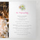 Programme de mariage à six pages pliées en trois, avec des hellébores de printemps en aquarelle sur fond blanc. Partie de la collection de papeterie de mariage à l'aquarelle avec des fleurs d'hellébore. Modifiez ce programme de mariage avec votre propre nom, dates, texte de la cérémonie, noms des participants au mariage, deux photos pleine page et remerciements. Joli programme floral, remplacez simplement le texte d'exemple par les détails de votre mariage. Programme de cérémonie de mariage moderne et romantique, d'autres articles assortis disponibles. © Peinture et design originaux de Sarah Trett pour www.mylittleedenweddings.com