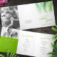 Programme de cérémonie de mariage d'aquarelle de fronde de palmier tropical vert frais. Bel programme de mariage idéal pour une végétation tropicale ou subtropicale ou un mariage de palmier plage. Personnalisez avec vos propres détails et photos. Des invitations et d'autres articles correspondants sont également disponibles. © frondes de palmier originales aquarelle peinture art et design par Sarah Trett pour www.mylittleedenweddings.com