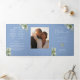 Un élégant programme de mariage de messe complète catholique avec de la verdure florale sur un fond bleu stylé. Conçu par Thisisnotme©