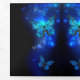 blue, glowing butterflies morpho on a dark ground. Morphine. Design avec des babouins.