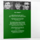 Programme funéraire graphique moderne simple en vert foncé, noir et blanc. Remplacez l'exemple de texte et douze photos de l'espace réservé par vos propres photos spéciales et votre ordre mémorial, nécrologie, lecture ou poème, et les accusés de réception, et les informations personnelles. D'autres articles de souvenir de conservation funéraire correspondants sont disponibles. Graphique textuel 'Le passage d'une légende' et design par www.mylittleeden.com