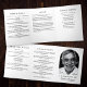 Elégant programme triplé de funérailles ou de service commémoratif avec une seule photo et un design noir et blanc classique offre un moyen intemporel d’honorer la vie et l’héritage de votre être aimé. La couverture avant est ornée d'une grande photo en forme d'arc suivie de la rubrique éditable "Une fête de la vie", avec le nom et les dates magnifiquement affichées dans les polices de script et de serif. Le reste de la mise en page offre suffisamment d'espace pour une nécrologie détaillée, un ordre de service, un poème ou une prière significatif, des remerciements, des touches personnelles telles que des citations, des souvenirs, une chronologie de vie, ou tout autre texte de votre choix. Une typographie propre et une disposition structurée assurent lisibilité et grâce, ce qui en fait l'idéal pour les mémoriaux traditionnels, les célébrations de la vie ou les services religieux.