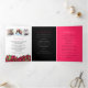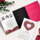 Tiré à la main dans le bouquet de coeur de tulipe rose programme de mariage d'art botanique avec vos propres sections histoire d'amour et souvenir. Personnalisez ce programme triplé mariage avec vos propres détails de cérémonie de mariage, les noms de fête, l'histoire d'amour et les dédicaces. Design en forme de coeur avec des dessins à l'encre de tulipe entourant vos propres initiales monographiques en rouge, vert, noir et blanc. Autres couleurs et articles mariages correspondants disponibles. © Dessin original et design d'encre par Sarah Trett pour www.mylittleedenweddings.com sur Zazzle.