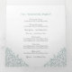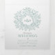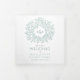 Un programme de mariage en forme de carré en forme de feuille d'art botanique à la sauge feuillue, vert, avec vos propres sections histoire d'amour et souvenir. Personnalisez ce programme triplé mariage avec vos propres détails de cérémonie de mariage, les noms de fête, l'histoire d'amour et les dédicaces. Design simple de feuilles entourant vos propres initiales monographiques en blanc et vert sauge. Autres couleurs et articles mariages correspondants disponibles. © Dessin et dessin de la feuille d'origine par Sarah Trett pour www.mylittleedenweddings.com sur Zazzle.