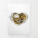 Mechanical, volumetric, steampunk heart with pressure gauge, steel and gold gears on white background. Steampunk style.