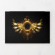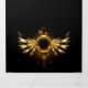 Shiny mechanical wings, with gears and brass round banner. Steampunk