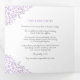 Programme de mariage en forme de carré en forme de feuille d'art en violet, gris foncé et blanc mono dessiné à la main avec vos propres sections histoire d'amour et souvenir. Personnalisez ce programme triplé mariage avec vos propres détails de cérémonie de mariage, les noms de fête, l'histoire d'amour et les dédicaces. Un design simple de feuilles violettes encerclant vos propres initiales monographiques et sur blanc et violet. Autres couleurs et articles mariages correspondants disponibles. © Dessin et dessin de la feuille d'origine par Sarah Trett pour www.mylittleedenweddings.com sur Zazzle.