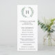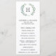 Programme de mariage rustique et élégant avec votre monogramme à l'intérieur d'une aquarelle verte peinte verdure couronne sur un arrière - plan blanc. Un design botanique moderne, parfait pour un mariage d'été.