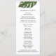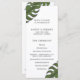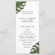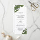 Programme de mariage moderne avec un design simple avec deux grands feuilles de palmiers verts avec vos cérémonies, sur un arrière - plan blanc sur le côté avant. Le côté arrière a une feuille de palme et votre fête de mariage. Ce design tropical est parfait pour un mariage d'été à proximité de la plage.